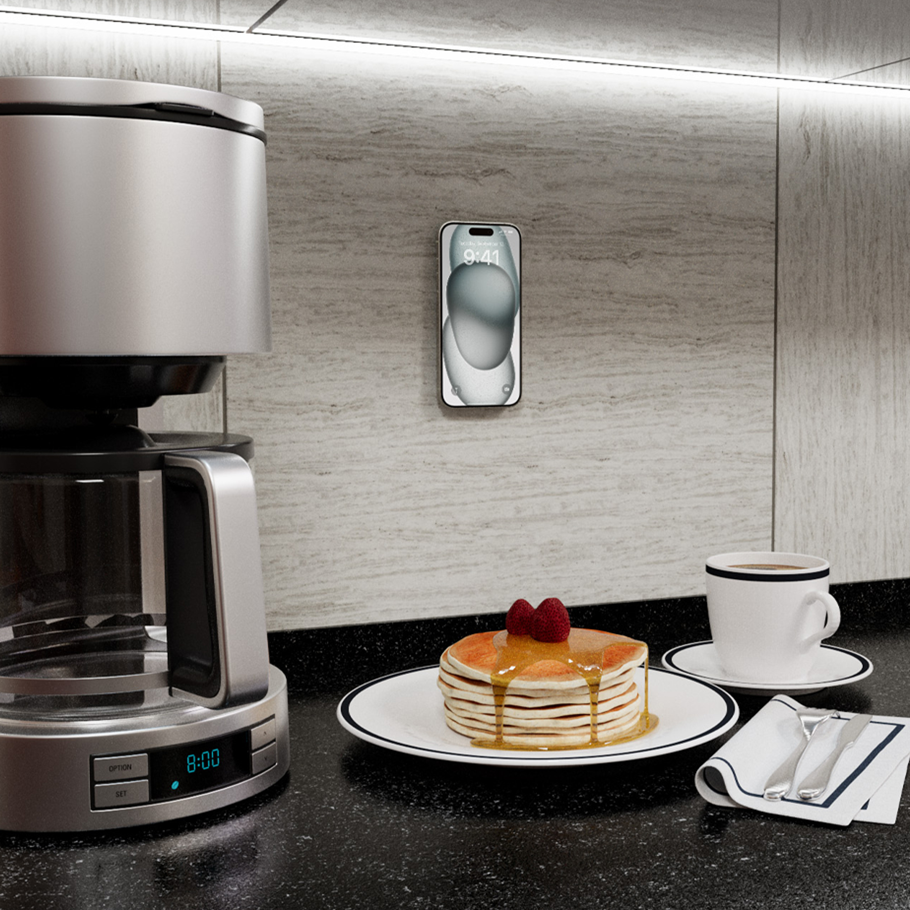 Grippy is a MagSafe-compatible phone mount designed for convenience. Its suction cups securely fasten to any clean, flat, glossy surface like mirrors and windows.