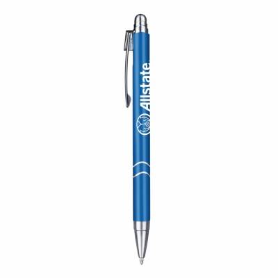 The Dawson Satin is a modern satin finished metal barrel with a chrome tip. It has a one piece rounded clip and pusher. Available in black ink only. Complies with Prop 65. Imprinted with the Allstate Horizontal logo.