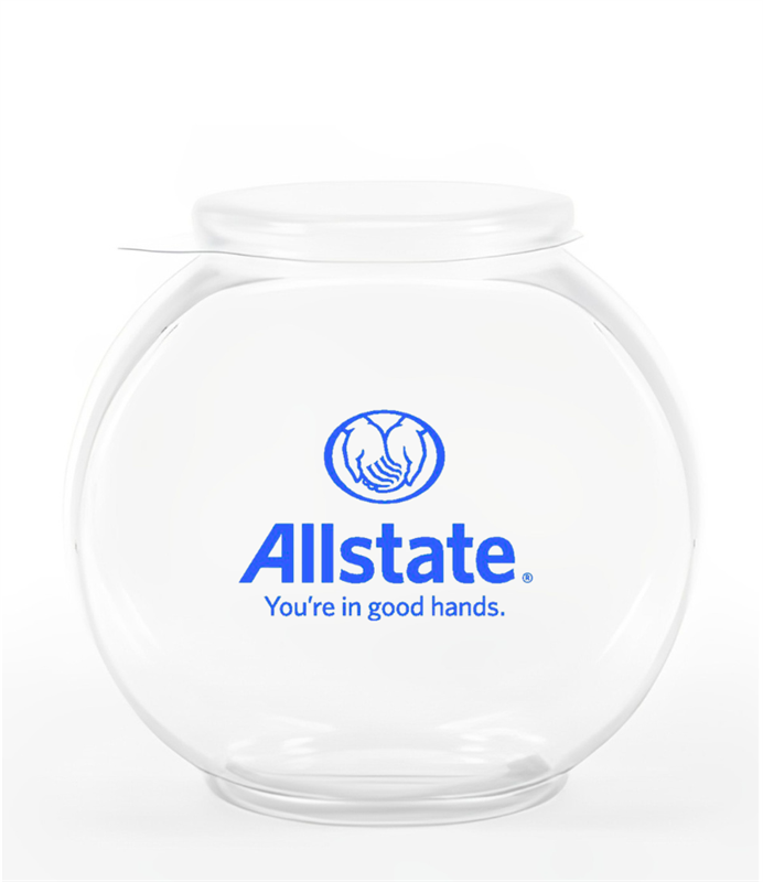 This 1/2 gallon plastic fishbowl can be used in booths as a place for visitors to deposit registration cards. Features the Allstate vertical logo printed in blue.Product Dimensions: 7" x 4-1/4" x 6-3/4"
