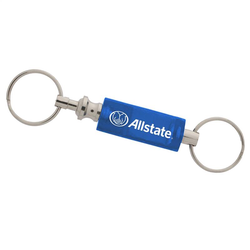 Colorful plastic body. 2-piece design allows keys to be easily separated. Imprinted with the Allstate horizontal logo.